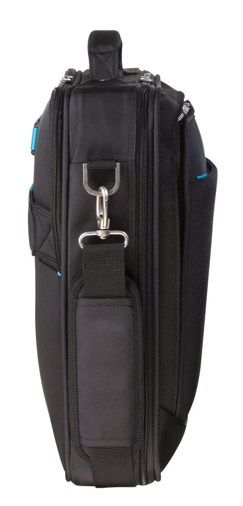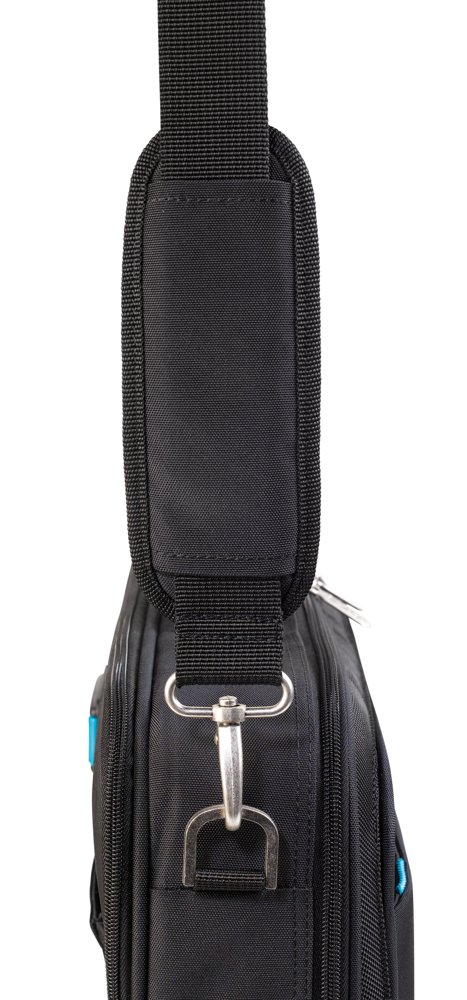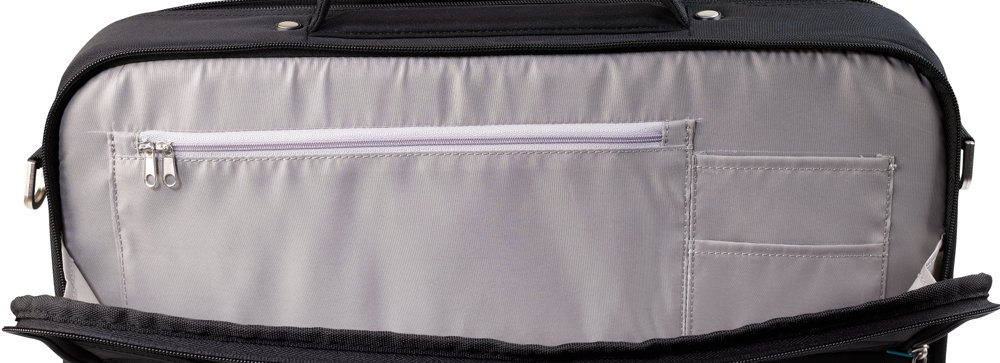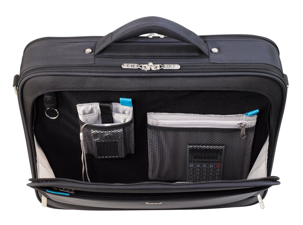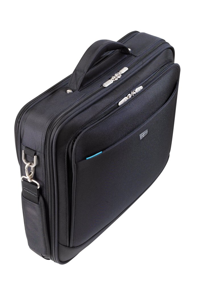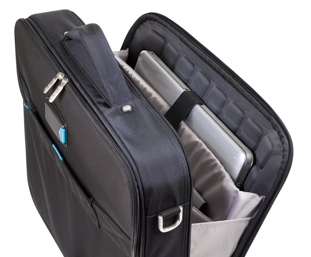 Med sitt flexibla system av påsar och fickor hjälper denna datorväska dig att bli bättre organiserad. Väskans ram och stoppning är särskilt utformad för förvaring och skydd av både dator och surfplatta. Väskan är tillverkad i slitstarkt, vattenavvisande polyestermaterial och skyddar dina saker mot smuts och väta. Den innehåller ett fack för resedokument som du snabbt och enkelt når, framficka och har dessutom gott om plats för dokument. Den har en avtagbar, vadderad axelrem, rem för trolley, namnskylt och två metallfötter i botten av väskan.