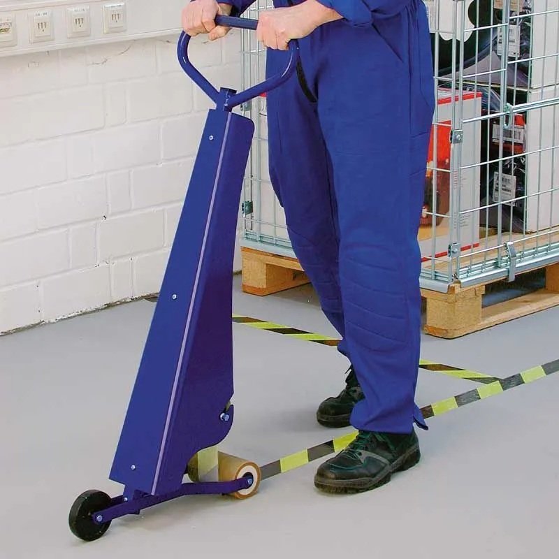 Vagn för golvtejp. För tydlig och enkel applicering av golvtejp, gör det enkelt att skapa raka linjer när man ska tejpa upp områden på golvet.