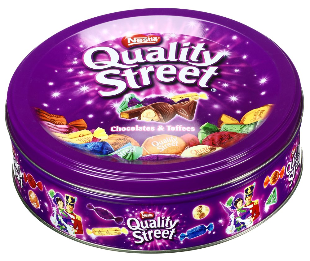 En tilltalande blandning av: Mjölkchoklad, Hasselnöt med caramell, Toffee, Vanilla fudge, Strawberry Delight mm.