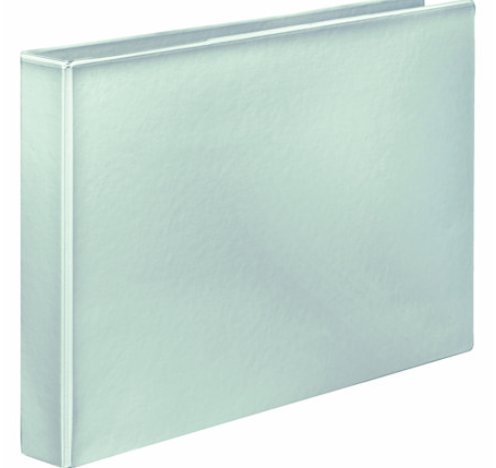 Bokpapp 2,5 mm, vit pärmfolie på utsida och insida, klar plast till fickor.