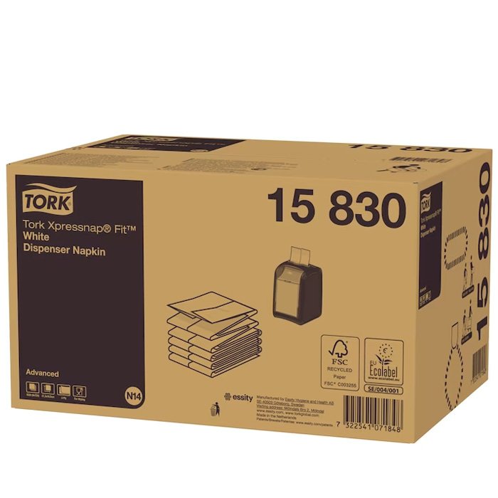 • En servett särskilt utformad för användning med dispensersystemet Tork Xpressnap® Fit.