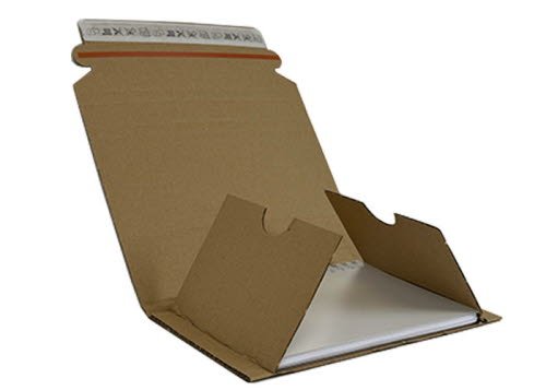 Omslag/bokomslag utgör ett effektivt och snyggt postemballage när du vill skicka böcker och andra kantiga produkter. Bokomslaget är gjort av treskiktswellpapp/multiwell och de invikta flikarna ger ett utomordentligt och effektivt skydd till det platta föremålet. Vissa är självlåsande med självhäftande klaff och dubbelhäftande tejp.