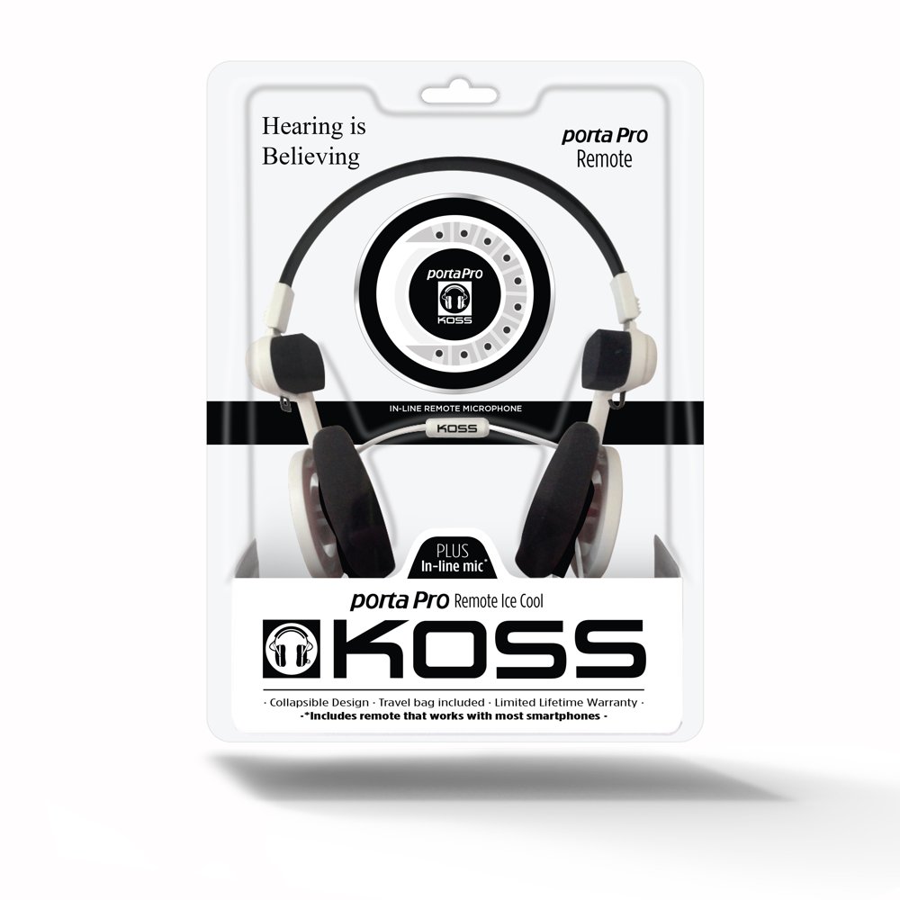Koss Porta Pro Remote är en vidarutveckling av Koss Porta Pro och har samma goda ljudkvalitet. Den har en fjärrkonroll med en knapp där du styr starta, stoppa, pausa och spela. Den har även mikrofon så att du kan svara på inkommande samtal. Hörluren är hopvikbar och är utrustad med ComfortZone så att man enkelt kan lätta på trycket mot öronen. Stödkudden mot huvudet ovanför öronen är anpassad för den som använder glasögon. Praktisk förvaringspåse medföljer.