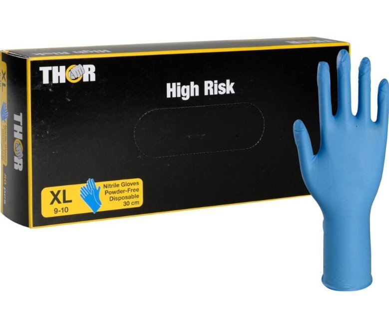 Nitrilhandsken är särskilt lämplig vid kemikaliestänk tack vare dess tjocklek, utan att kompromissa med fingertoppskänsla.