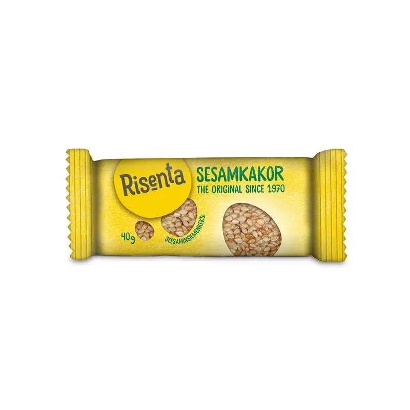 Klassiska sesamkakor från Risenta. Redan på 70-talet, förgyllde Risenta landet med sina ljuvliga sesamkakor. Om caféer, butiker, gym eller exempelvis hotell vill erbjuda sina kunder en energikick, snabbt mellanmål eller något smidigt att ta to-go, är en produkt som den här perfekt. Sesamkakan innehåller en hög del nyttiga fetter som bryts ner långsammare och därmed ger en mer långvarig mättnad. Sesamkakorna är till och med helt glutenfria!
