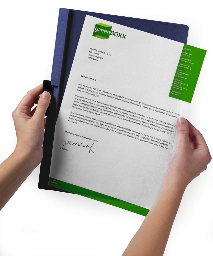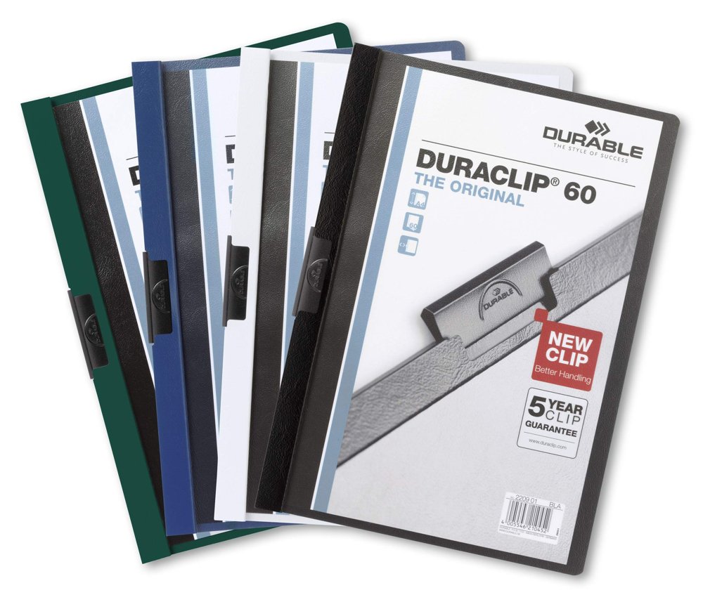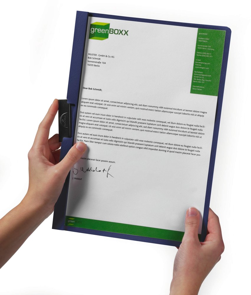 • Mapp med klämma av specialstål för säker förvaring av dokument