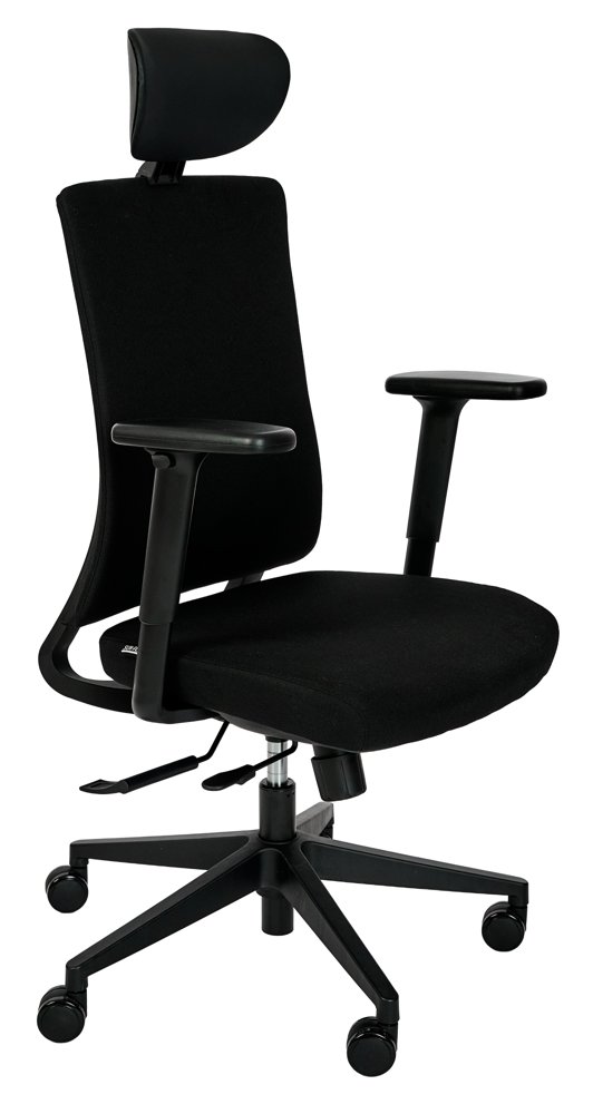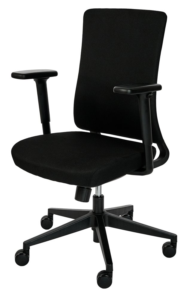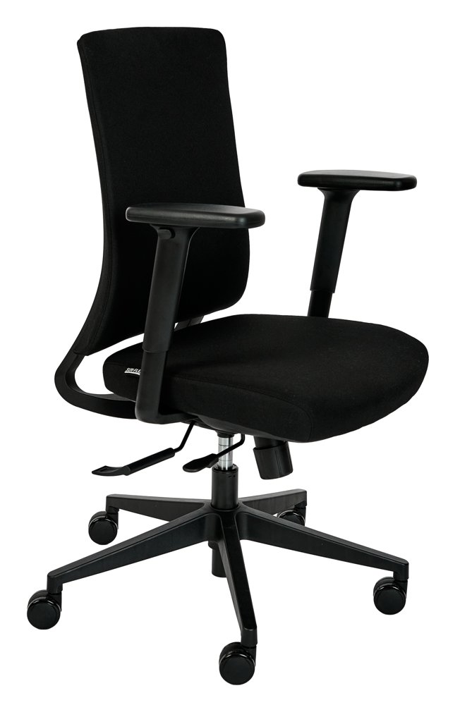 Kontorsstolen har en bekväm sits och rygg med absorberande stoppning samt slitstark textilklädsel som klarar daglig användning i krävande kontorsmiljöer. Det justerbara svankstödet och den följsamma gungfunktionen ger bra stöd för ryggen och uppmuntrar rörelse, vilket minskar belastning vid stillasittande arbete.