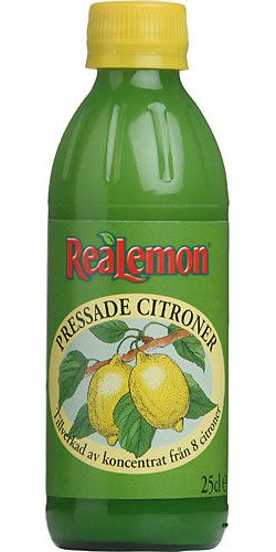ReaLemon är pressad citron från 8 citroner som direkt tappats på flaska.