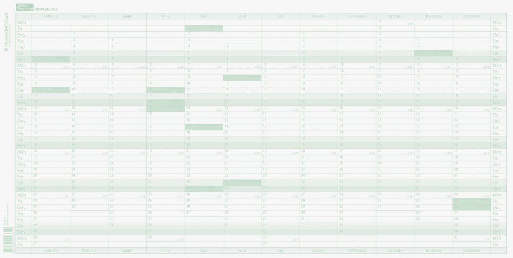Årsplan 59 x 30 cm · 5 blad/st · Veckoindelad årsöversikt, vertikal