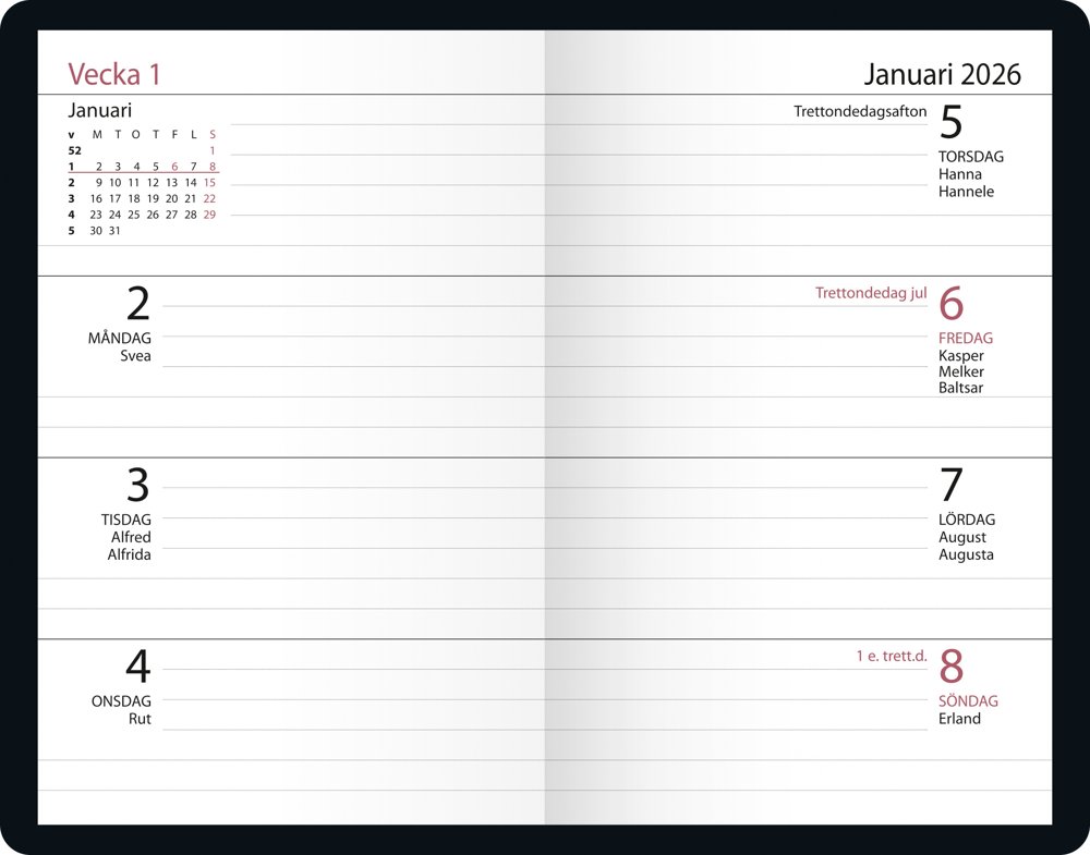 Timkalender Svart Konstläder FSC