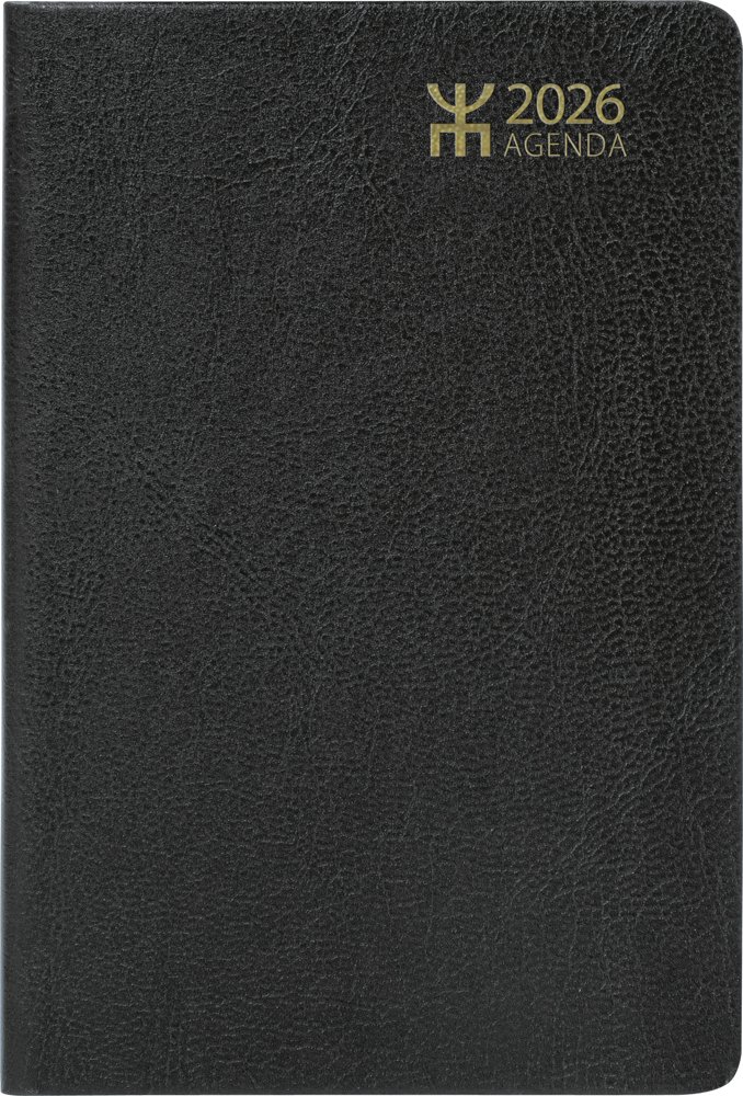 Agenda · 8,2 x 12,8 cm · 216 sidor · Konstläder · Svart · Inbunden · 1 vecka/uppslag · Årsplaner 2026/2027 · Kalendariska uppgifter, Solens upp-och nergång, Allmänna helgdagar, Anteckningssidor