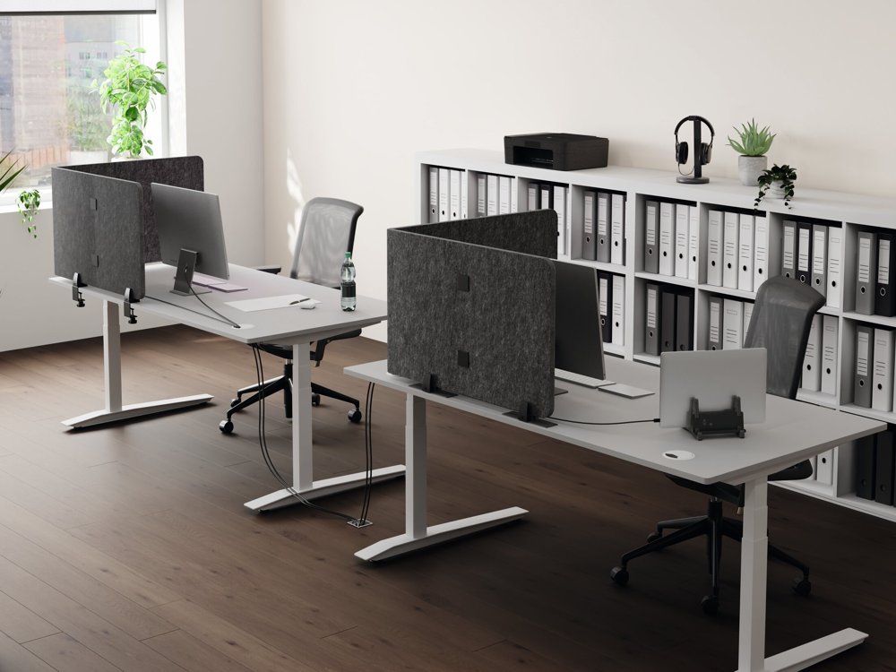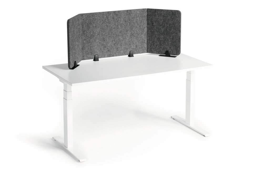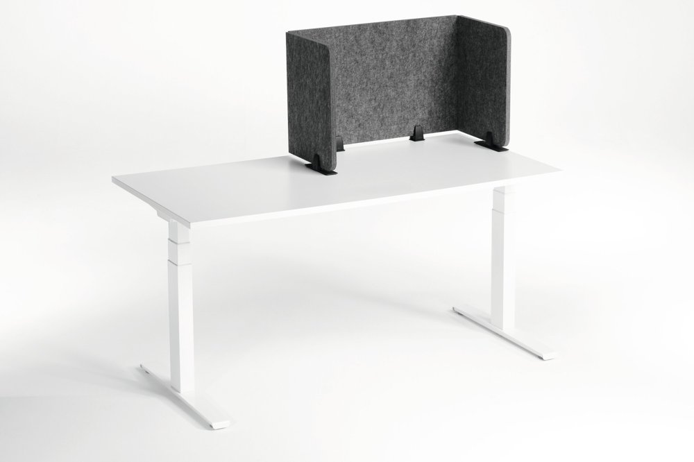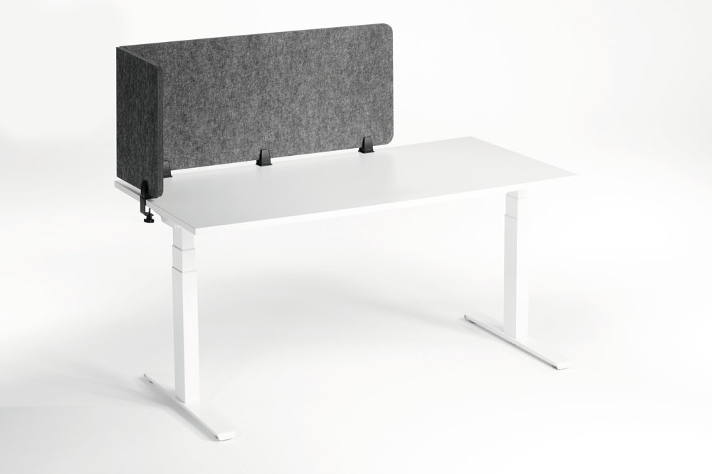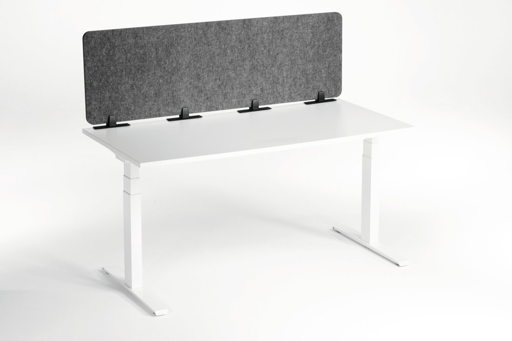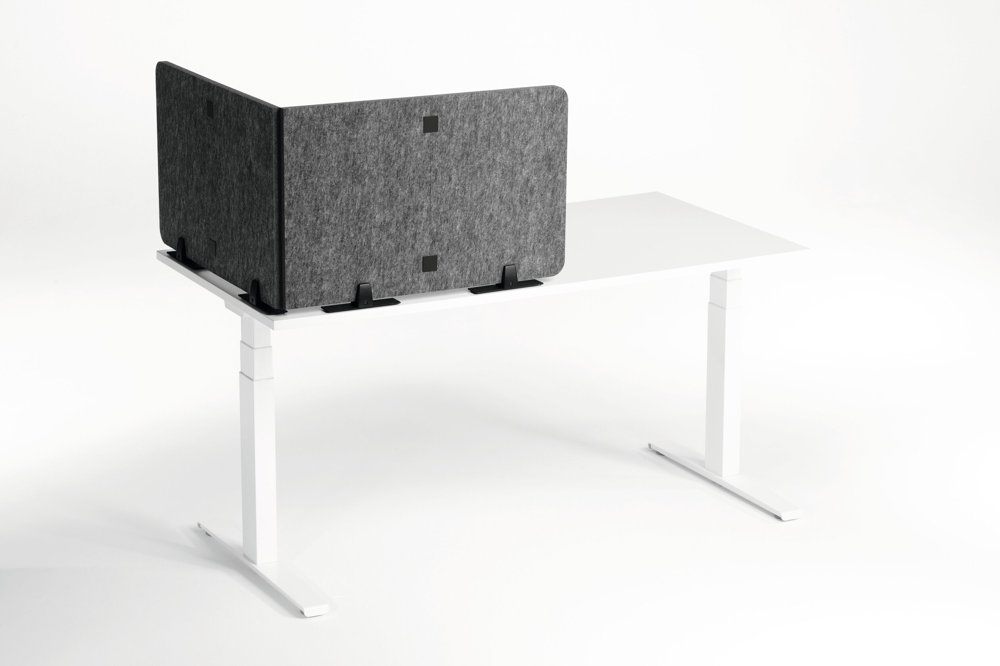• Vikbar bordsskärm av återvunnen PET-filt för effektiv avskärmning och ljuddämpning av arbetsplatsen.