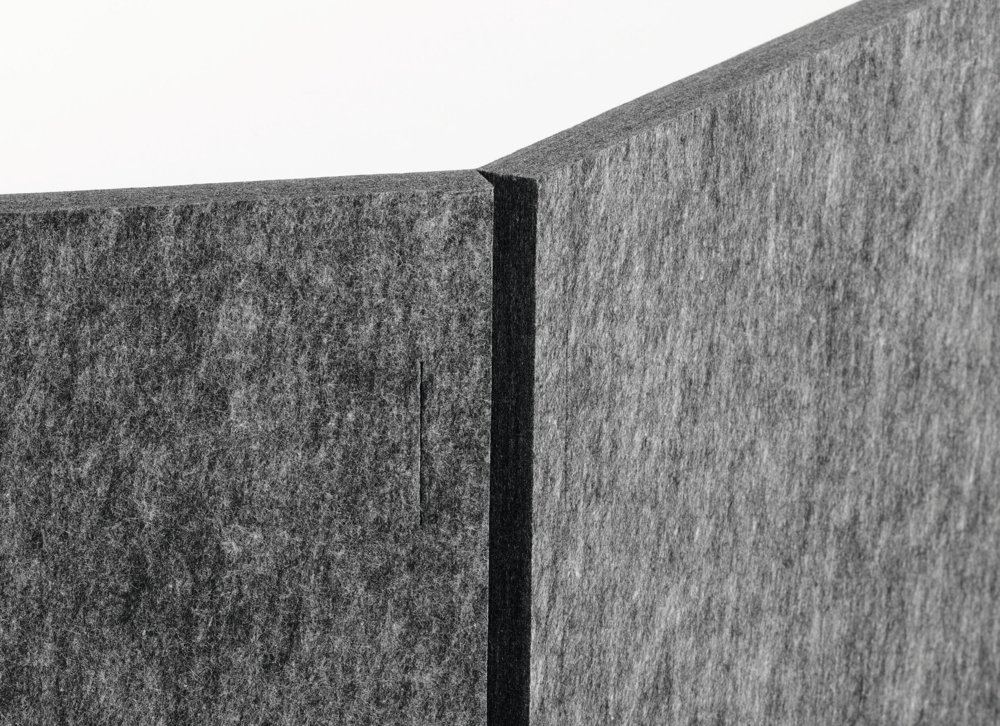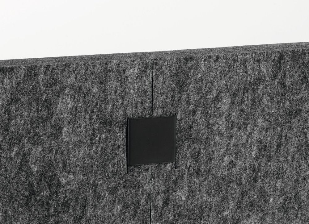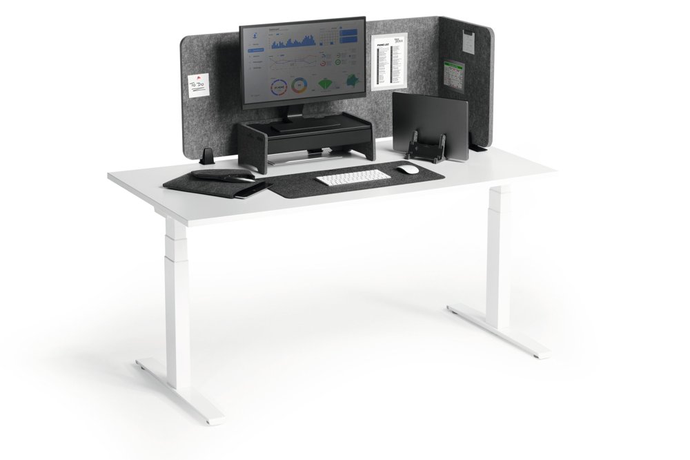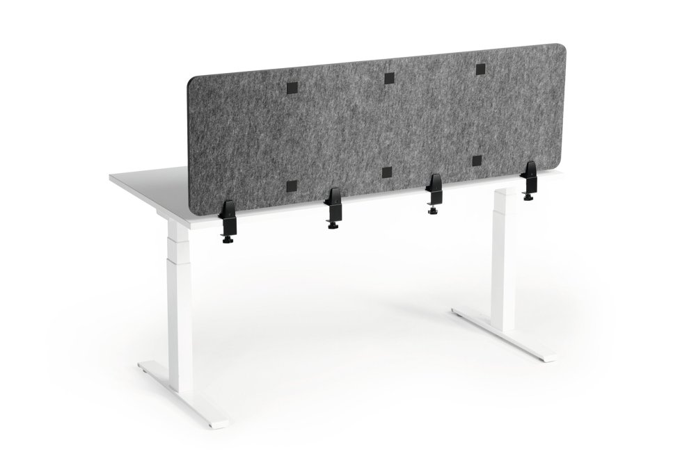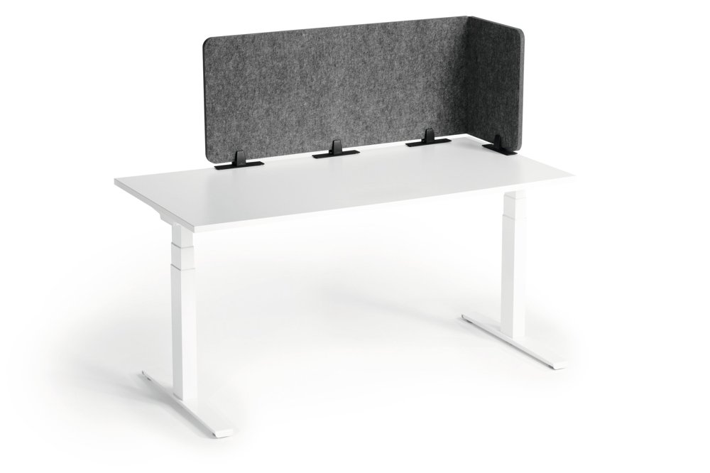 • Vikbar bordsskärm av återvunnen PET-filt för effektiv avskärmning och ljuddämpning av arbetsplatsen.