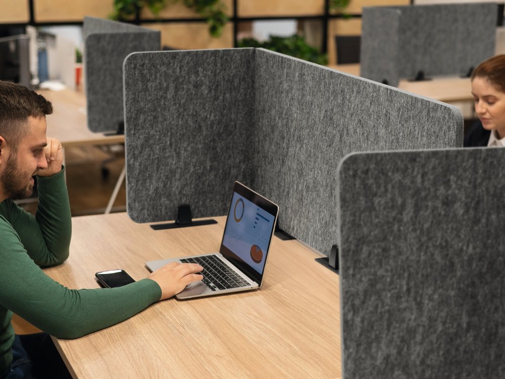 • Ger en personlig avgränsning av arbetsplatsen och bättre akustik som minskar störande ljud