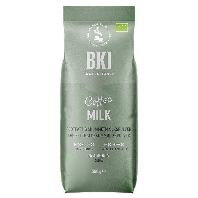 BKI Organic Milk (0,8% fett), 100% ekologiskt skummjölkspulver med en ren och läcker mjölksmak. Utvecklad för användning i maskiner för bryggning av Cappuccino, Café Latte och Café au Lait.