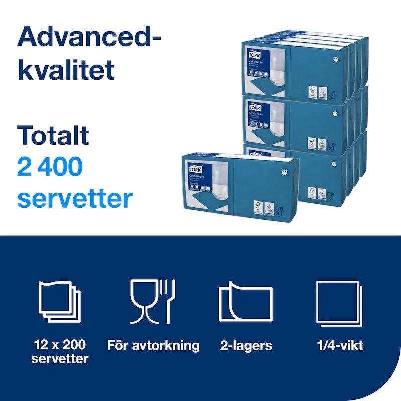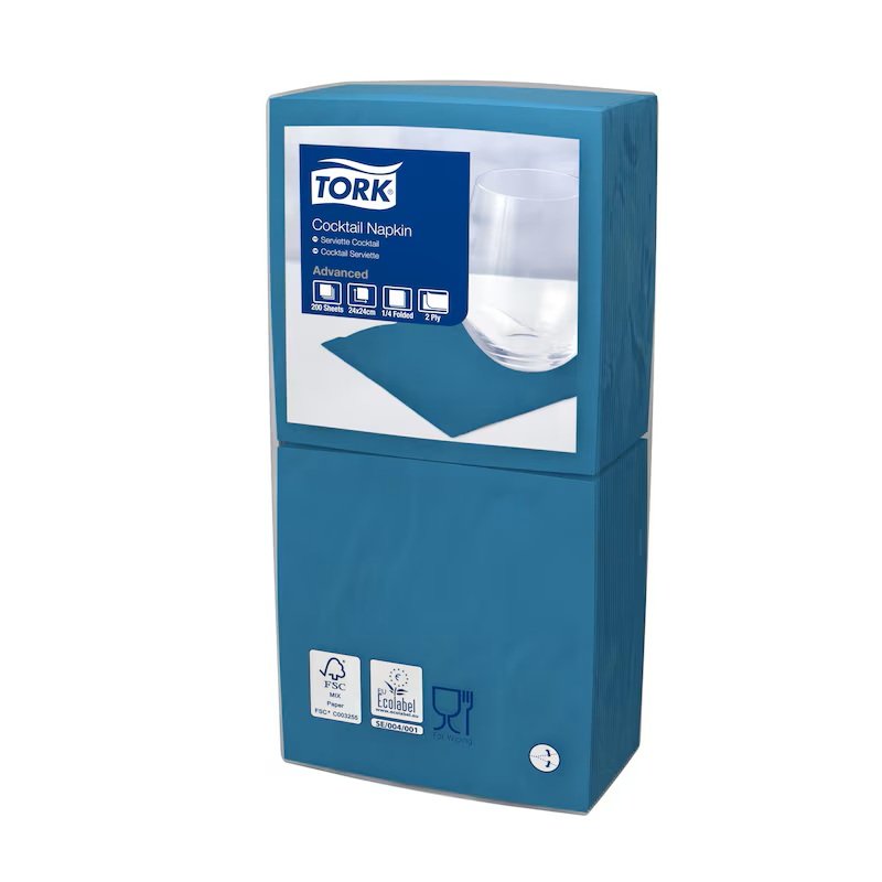 Tork cocktailservetter passar perfekt på barer och kaféer som serverar lättare mat och dryck. De finns i ett stort urval av moderna och klassiska färger som ger bordsdukningen en elegant touch.