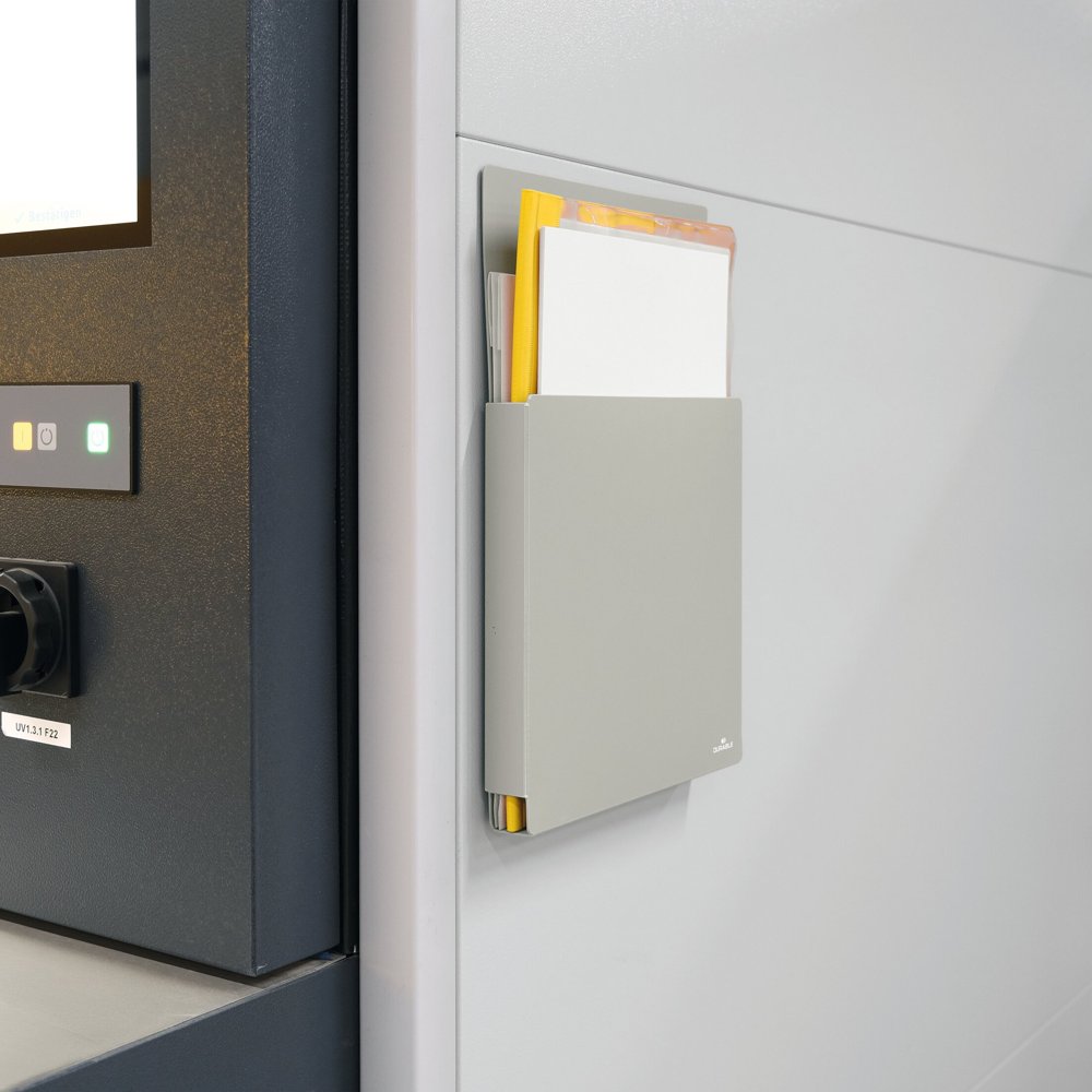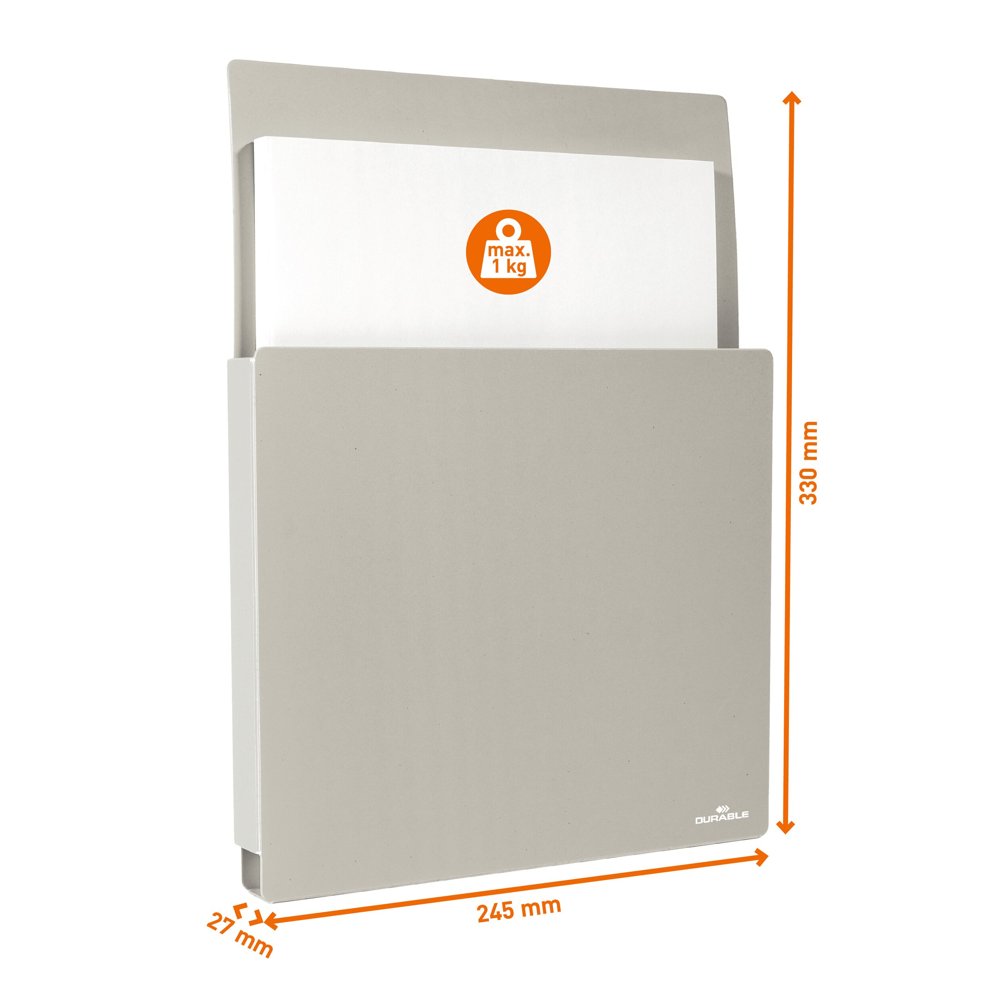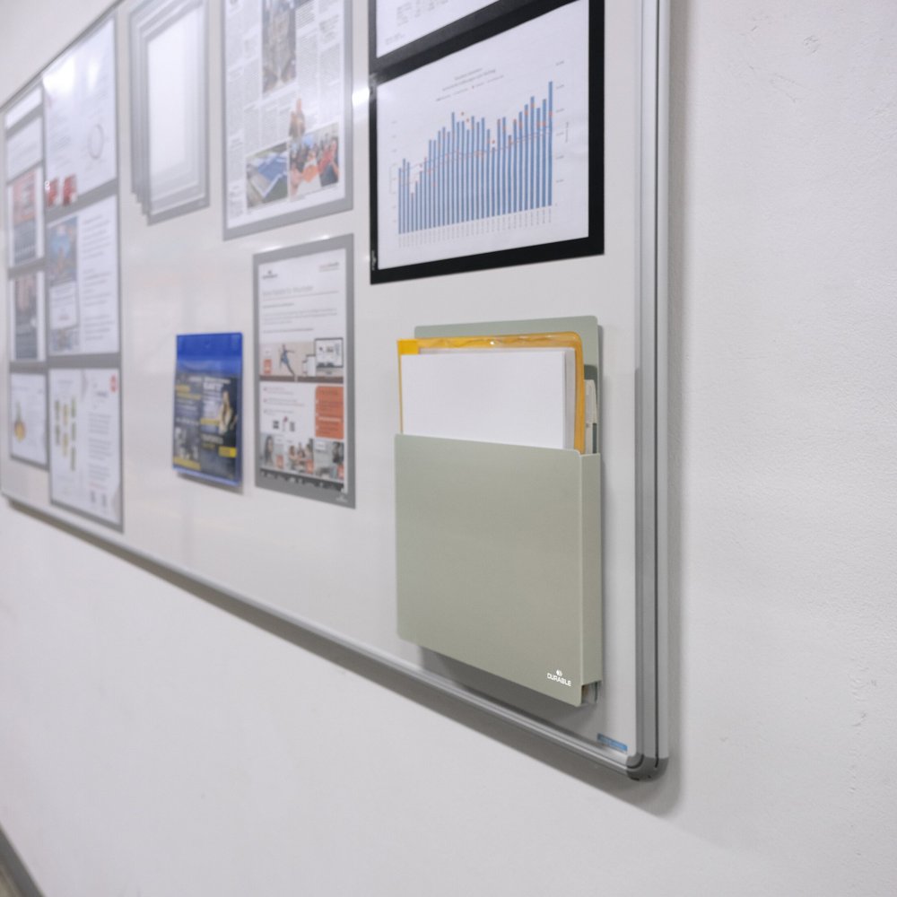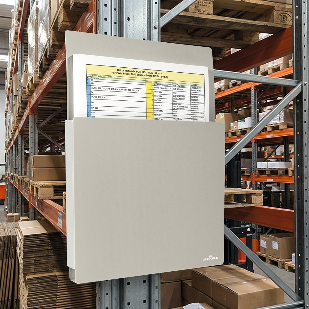 Pappersfack, blankettfack, broschyrhållare, dokumenthållare - vad du än kallar det så är INFO BOX A4 magnetisk, ett stadigt fack av 95-100% insamlad återvunnen, grå polypropylenplast. Facket rymmer 22 mm tjocka buntar med informationsblad, frågeformulär, prislistor och annan information som behövs tillgängligt i pappersform på mässor, i väntrum, utställningsrum, receptioner m.fl ställen. Denna modell fästes magnetiskt på t.ex whiteboardtavlor eller på vårt golvskylt stativ INFO STAND BASIC A4 (art.nr 501257). Lastkapacitet på upp till ca. 1 kg.