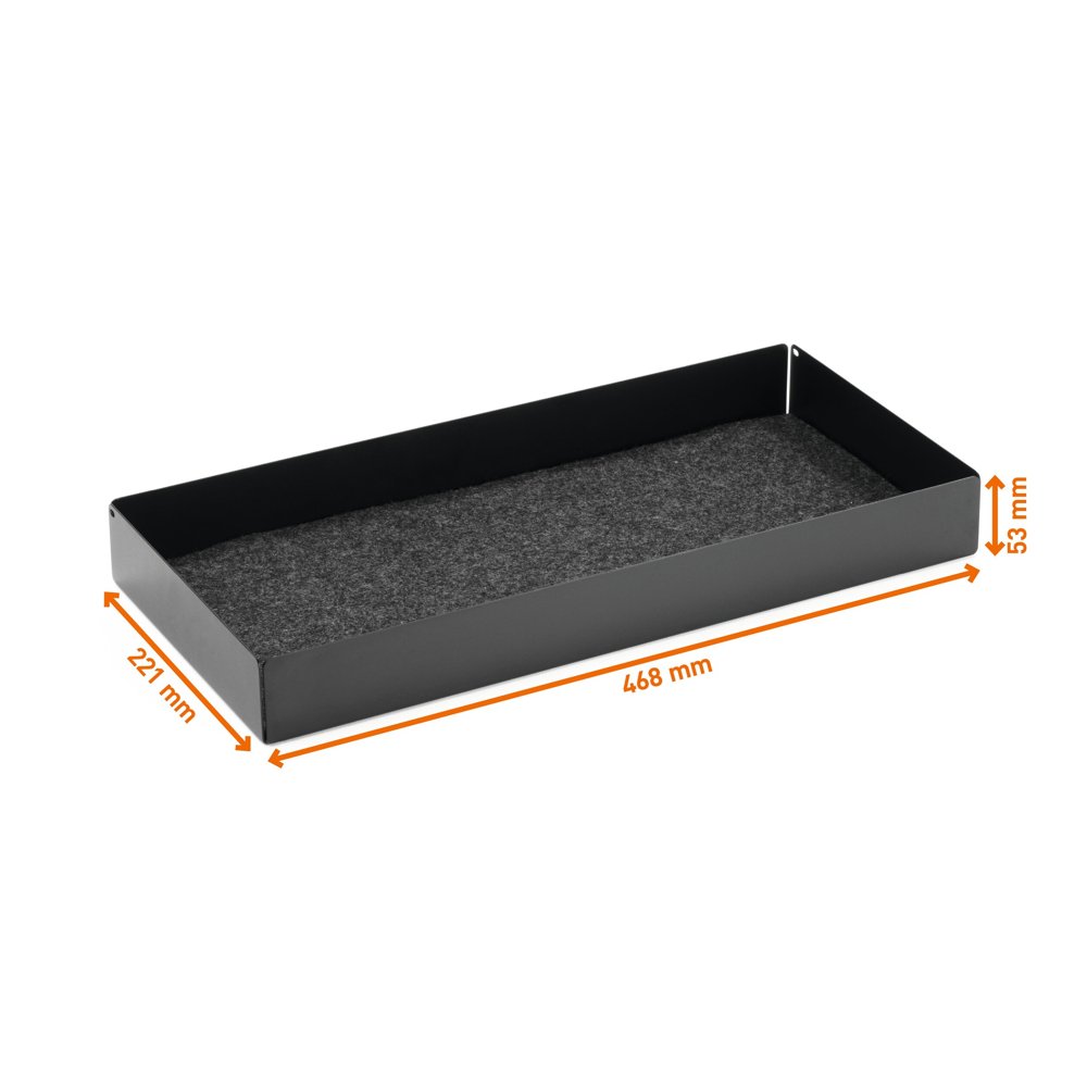 • Säkert undanstuvad: med ljuddämpande filtmatta i lådan