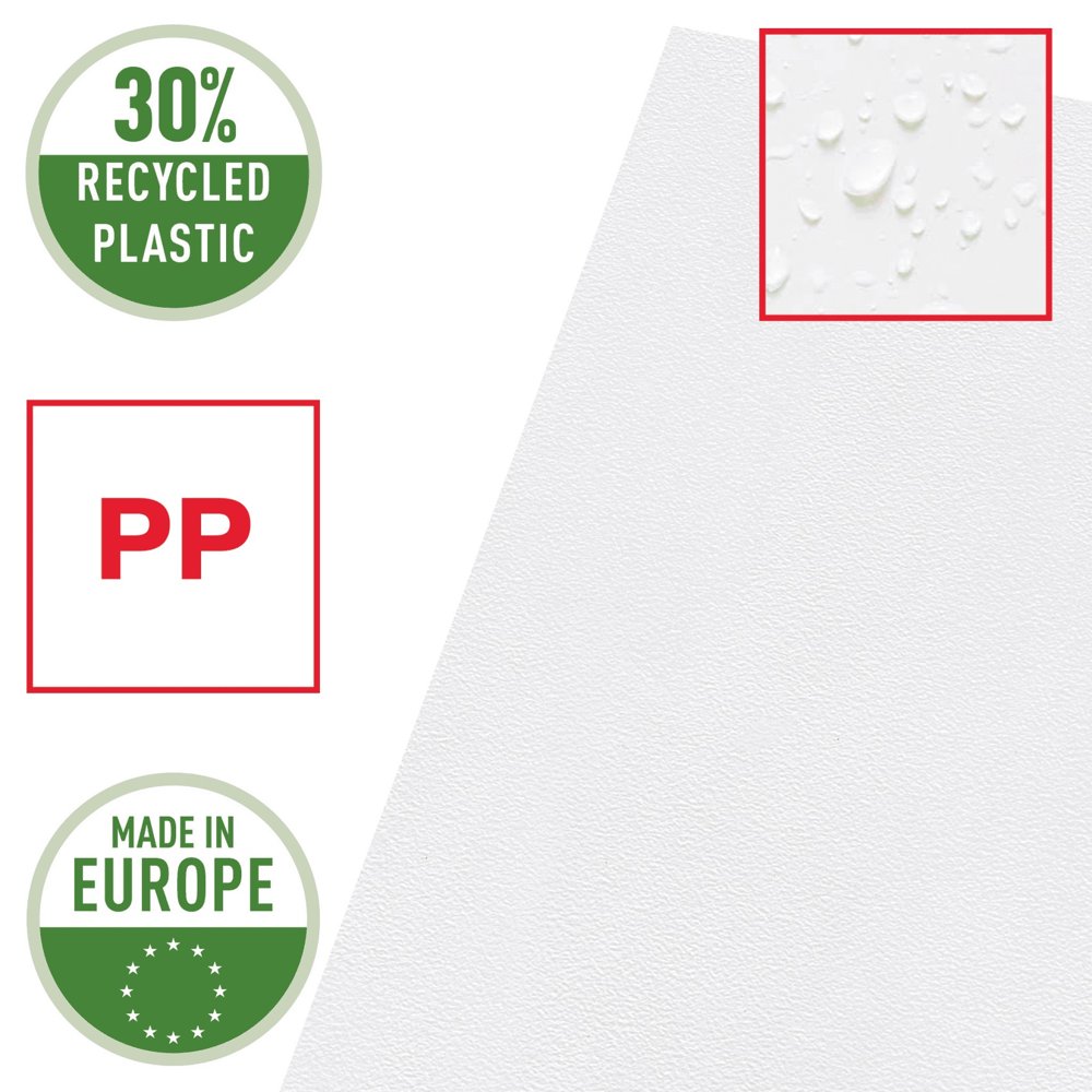 • Kraftig polypropylen i 115 mikron säkerställer att mappen kan återanvändas om och om igen