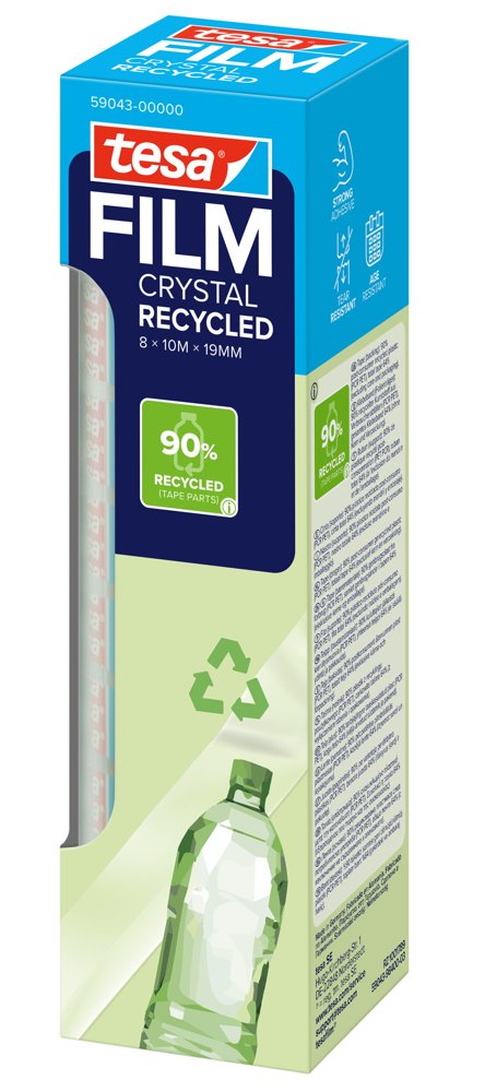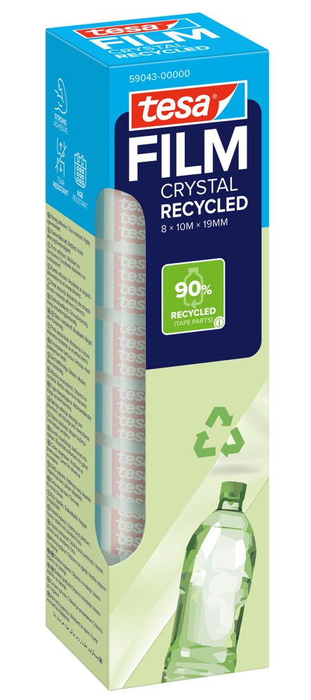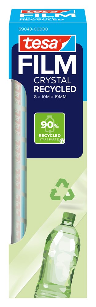 tesafilm® är tillverkad av återvunna PET-flaskor – transparent tejp med stark fixering. Perfekt för limning, packning, fixering, dekoration eller reparation. Rullens kärna är också tillverkad av 100 % återvunnen plast.