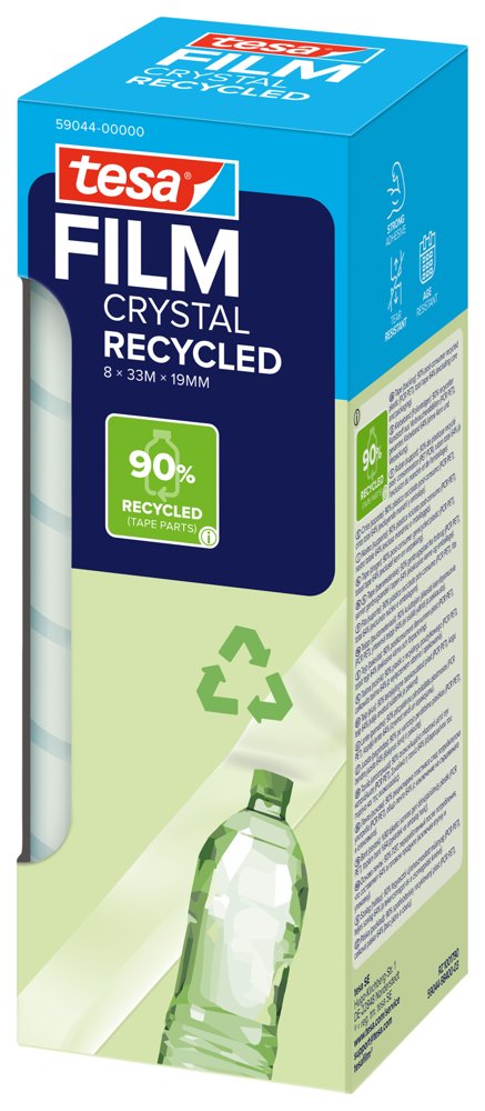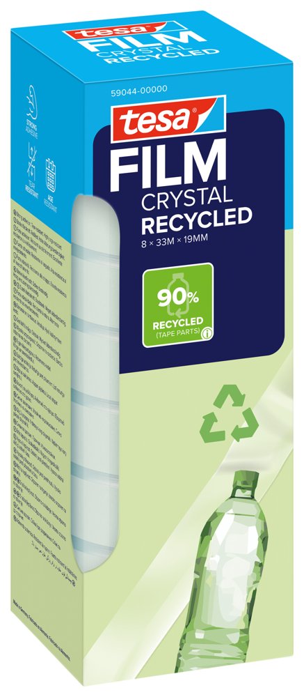 tesafilm® är tillverkad av återvunna PET-flaskor – transparent tejp med stark fixering. Perfekt för limning, packning, fixering, dekoration eller reparation. Rullens kärna är också tillverkad av 100 % återvunnen plast.