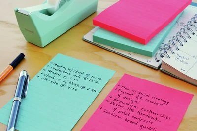 Post-it® Super Sticky Large Notes har dubbelt så stark häftförmåga (jämfört med Post-it® Original Notes). De är superstarka och superflexibla, perfekta för lodräta ytor och material som är svåra att fästa på och designade för att dina meddelanden ska synas. De stora och linjerade självhäftande Notes är perfekta för att-göra-listor eller mötesanteckningar.
