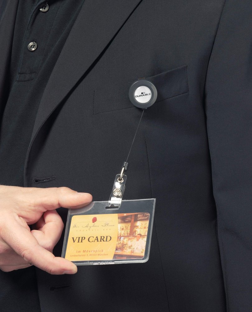 • Jojo med tryckknappsögla för fastsättning av namnskylt, ID-kort osv.