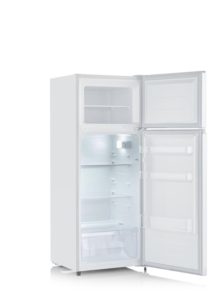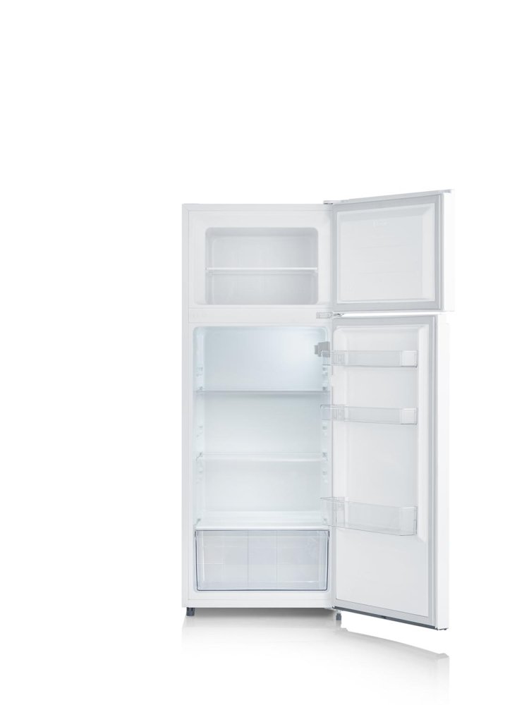 Kyl&frys med frysen upptill är en praktisk och energieffektiv lösning för ditt kök. Detta skåp har energiklass E och erbjuder en kapacitet på 164 liter för kyl och 41 liter för frys. Med en höjd på 144 cm och en bredd på endast 55 cm passar det perfekt även i mindre utrymmen. Dess klassiska vita design ger en tidlös touch till ditt kök.