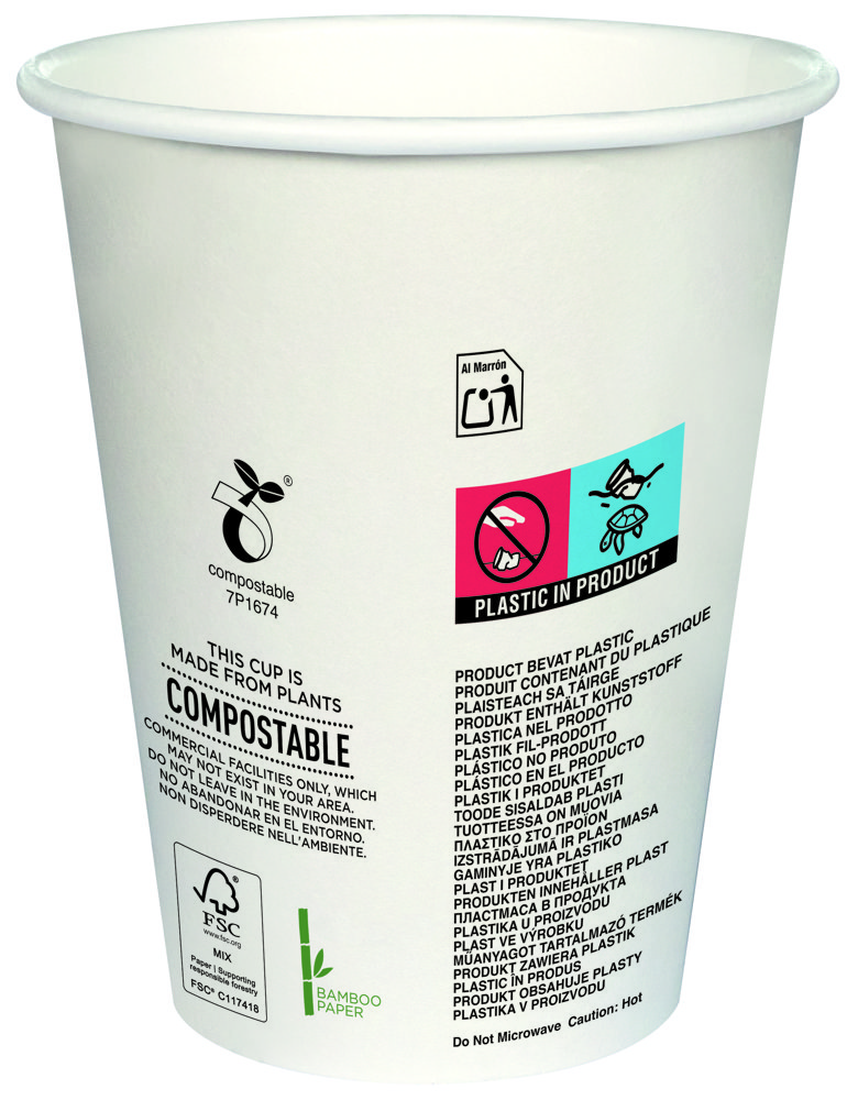 Hot Cup Bägare 355ml (12oz) Ø 90mm bambupapper/PLA