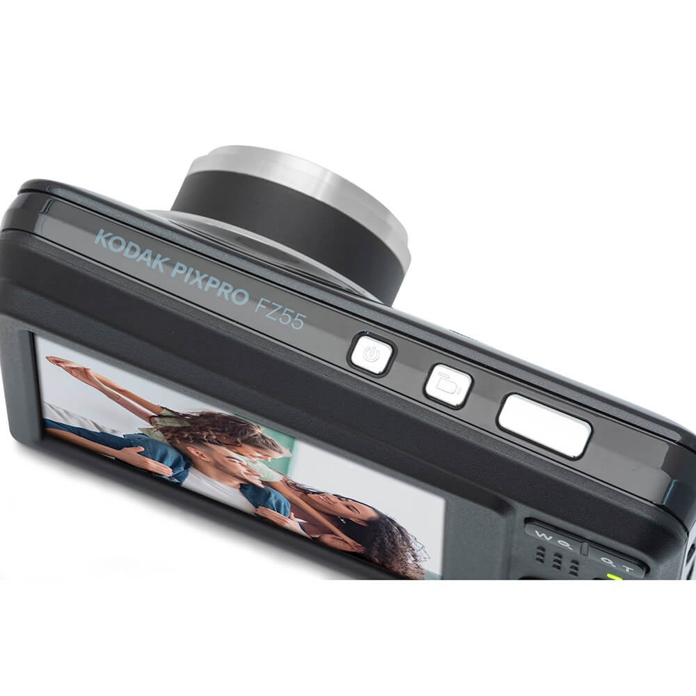 Kodak PIXPRO FZ55 Digital Camera är en liten och lättanvänd Friendly Zoom-kamera från Kodak PIXPRO-kollektionen. Den här "point-and-shoot"-kameran har ett 28 mm vidvinkelobjektiv med en 16 MP 1/2,3" CMOS-sensor och 2,7" LCD-skärm.