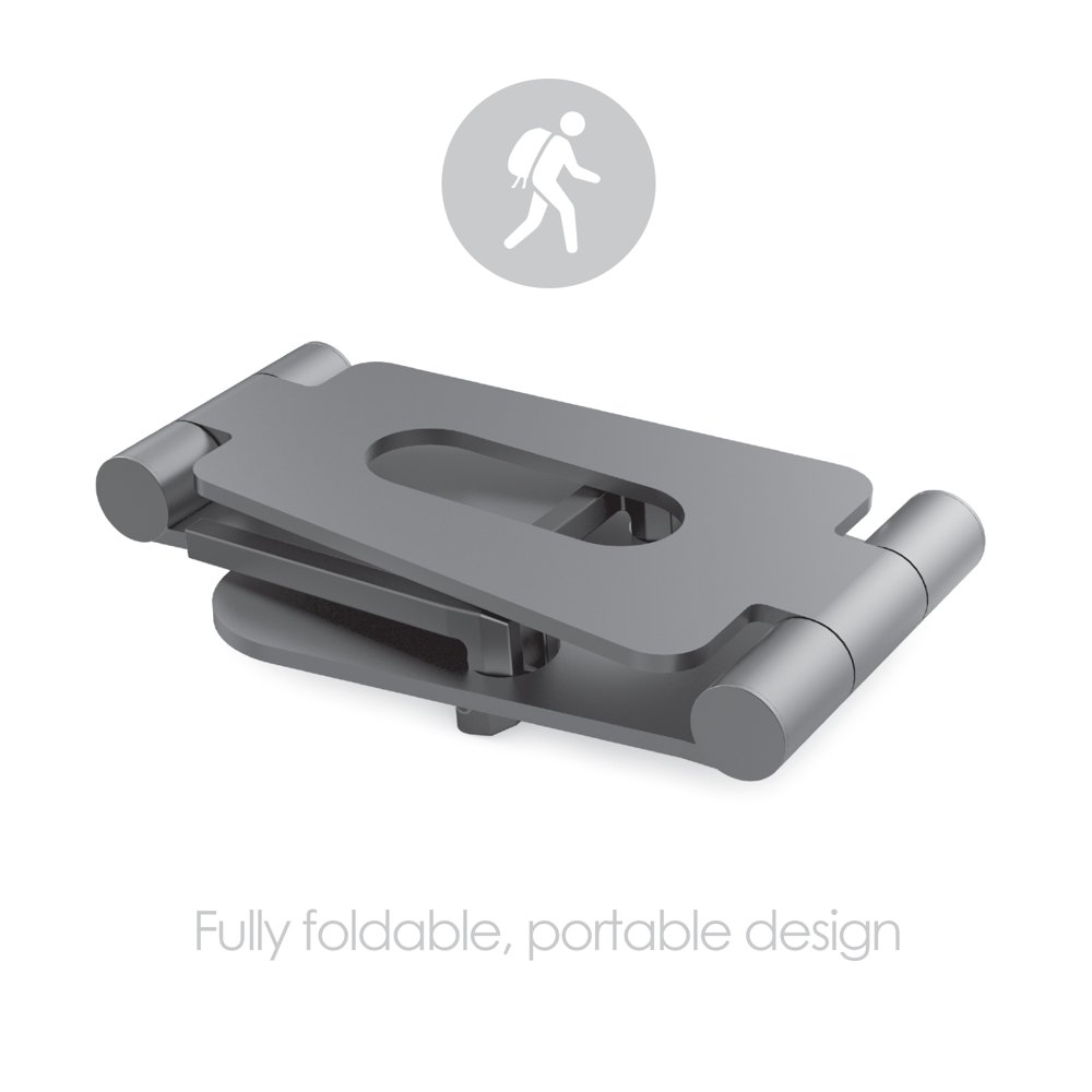 Desire2 View My Screen Anywhere skrivbordsställ för smartphones och surfplattor. Premium aluminiumlegering i en helt vikbar ergonomisk design. Fullt roterbara leder möjliggör optimal visning för din smartphone eller surfplatta. Precisionsfrästa utskärningar för enkel laddningsåtkomst. Taktil silikon för stabilt grepp.