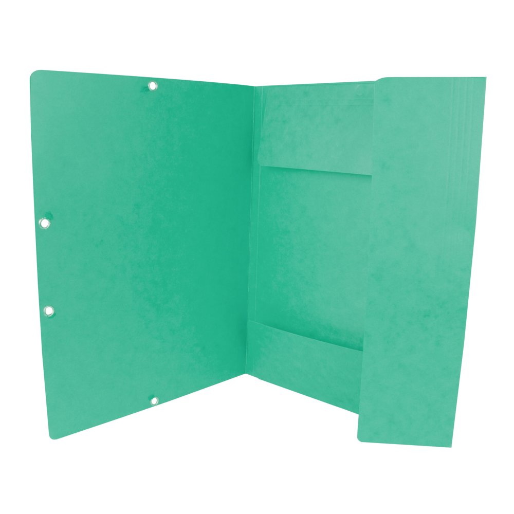Gummibandsmapp i pressad papp med 3 klaffar och etikett i ryggen.
