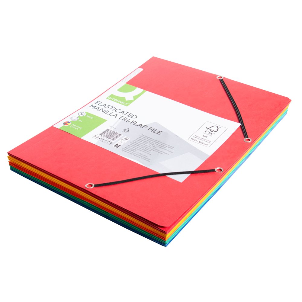Gummibandsmapp 3 klaff A4 sorterade färger
