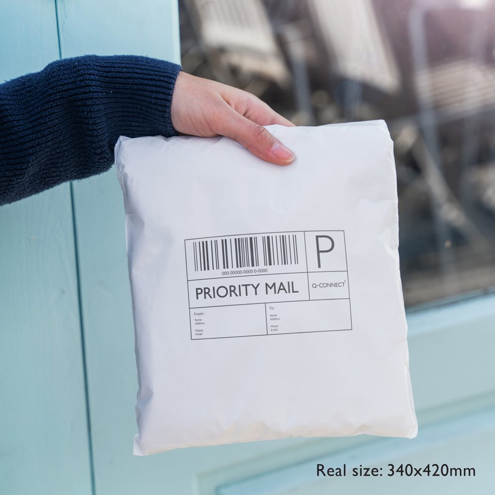 Q-Connect Vita, ogenomskinliga försändelsepåsar med svart insida, tillverkade av 100 % återvunnet material. 3-lagers slitstark PE-film 50 mikron. Kurirpåsarna är slitstarka, vattentäta, riv- och punkteringsbeständiga. De har en stark självförslutande förslutning med en remsa. Påsens mått: 340 x 420 mm. Låda med 100 stycken.