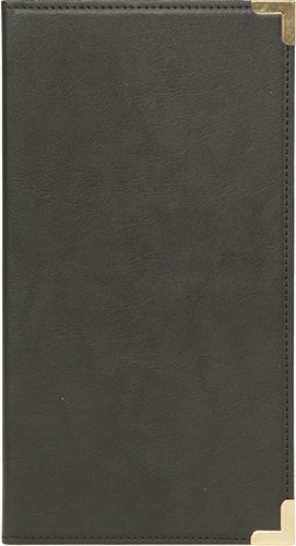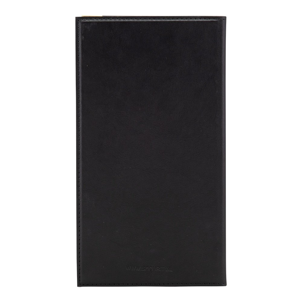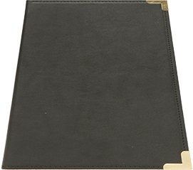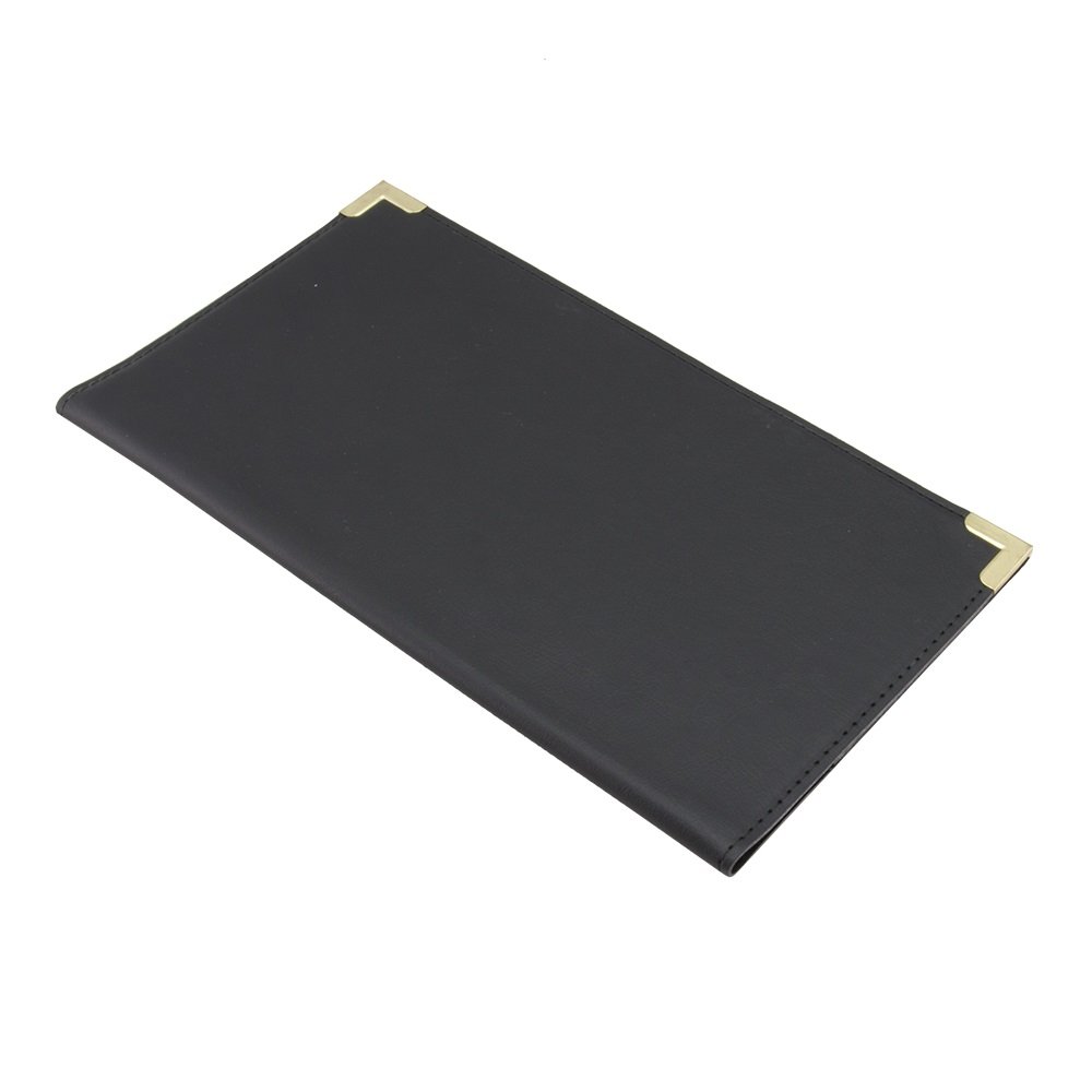 Var elegant med en Securit® kvittohållare. Denna kvittohållare i klassisk läderstil är perfekt för traditionella barer, pubar och restauranger. Med hörnskydd av metall i guld, hörnfickor där du enkelt kan skjuta in notan eller kontanter, och en kortficka för kredit-, bank- eller visitkort.