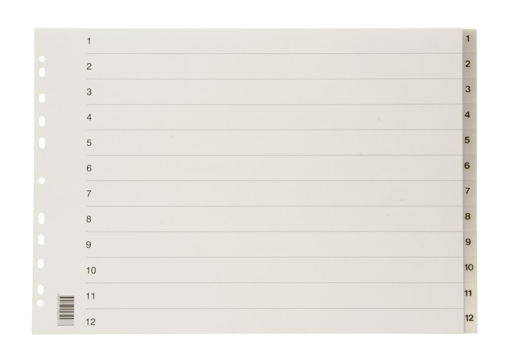 Register 1-12 PP liggande A3 0,22 mm transparent