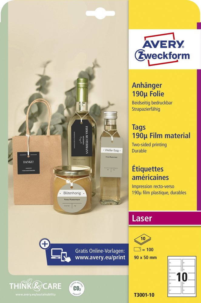 Perfekt för t.ex. produktmärkning. Oavsett om det gäller detaljhandel, industri eller privat: Averys hängande etiketter tillverkas av vit film av hög kvalitet och kan användas på ett otroligt mångsidigt sätt, till exempel som: