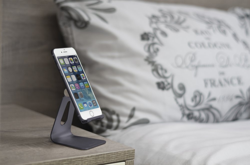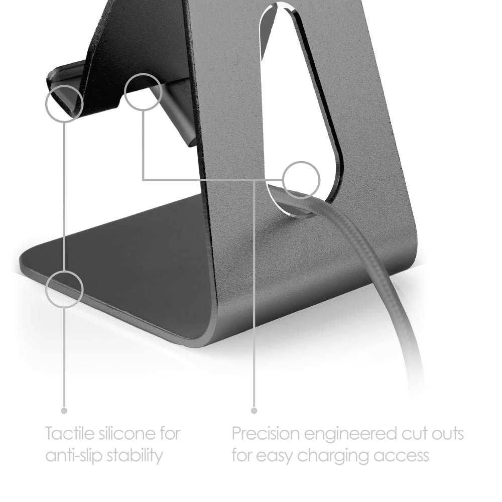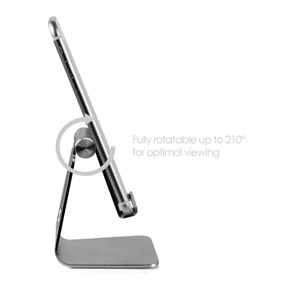 Desire2 View My Screen Home skrivbordsställ. Premium aluminiumlegering i en minimalistisk ergonomisk design. Full roterbar vridning upp till 210 grader möjliggör optimal visning med din smartphone. Precisionsfrästa urskärningar för enkel laddningsåtkomst. Takil silikon för stabilt grepp.